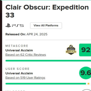 Clair Obscur: Expedition 33 Metascore I saw a headline the other day about how Clair Obscur: Expedition 33 was not just tied as the highest-scored game of 2025, it was…