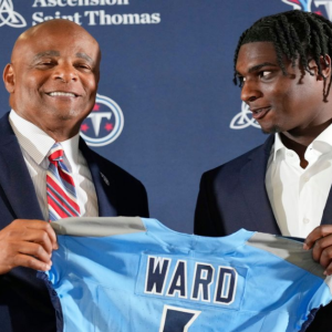 play Cam Ward says he is honored to wear Warren Moon’s No. 1 jersey (0:43) Warren Moon surprises Cam Ward at his introductory presser by permitting him to wear his…