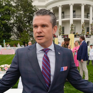 Secretary Pete Hegseth speaks with reporters on the South Lawn of the White House before President Donald Trump and first lady Melania Trump participate in the White House Easter Egg…