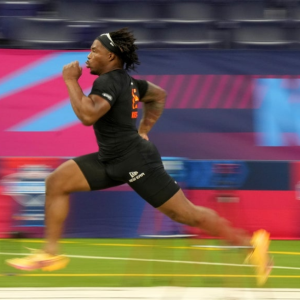 Mar 1, 2025; Indianapolis, IN, USA; Boise State running back Ashton Jeanty (RB15) during the 2025 NFL Combine at Lucas Oil Stadium. Mandatory Credit: Kirby Lee-Imagn Images All the mock…