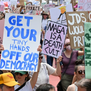 Thousands of people in midtown Manhattan demonstrated against Trump’s policies on government, tariffs, immigration, education, and more.Andrea Renault/ZUMA Fight disinformation: Sign up for the free Mother Jones Daily newsletter and…