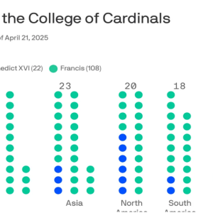 Data: Vatican Press Office; Chart: Erin Davis/Axios Visuals Some time in the next three weeks, members of the College of Cardinals younger than 80 will enter the Sistine Chapel to…
