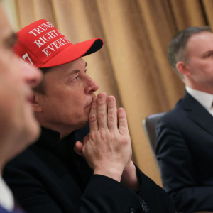 Tesla CEO Elon Musk wears a ‘Trump Was Right About Everything!’ hat, as he, U.S. Trade Representative Jamieson Greer and Central Intelligence Agency Director John Ratcliffe attend a cabinet meeting…