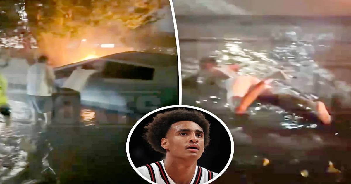 The video, obtained by TMZ and shot by a neighbor of the Arenas family, revealed a scary scene where the Tesla of the USC men’s basketball commit was engulfed in flames, while a nearby fire hydrant spewed water after the car hit it.