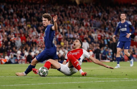 43 min Saka is furious to be penalised for a foul on Mendes, who made the most of a slight shove in the back, and boots the ball away in frustration. He’s booked. Arsenal think the world is against them, or at least the referee Slavko Vincic.