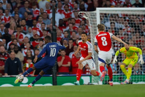 24 min “Watching this tonight in a small, rustic pub in south-west Poland and the thirty or so crowd are big-time behind Arsenal,” writes Peadar de Burca. “I’m nursing a Belgian Leffe and as much as I’d like to be the bigger man and join in, my loyalty to Liverpool won’t allow it. What’s wrong with me? We won the league. PSG beat us fair and square. Why can’t I take the tribalism hand-brake off and throw out a little Gooner-love? Maybe a second Leffe will help…”