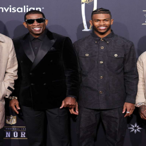 Shedeur Sanders, Deion Sanders, Shilo Sanders and Deion Sanders Jr. attend the 13th annual NFL Honors on February 08, 2024 in Las Vegas, Nevada. Photo: Ethan Miller/Getty Football runs in…