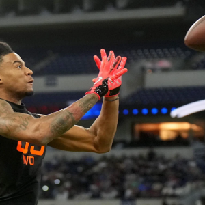 Mar 1, 2025; Indianapolis, IN, USA; Texas wideout Isaiah Bond (WO05) during the 2025 NFL Combine at Lucas Oil Stadium. Mandatory Credit: Kirby Lee-Imagn Images / Kirby Lee-Imagn Images Former…