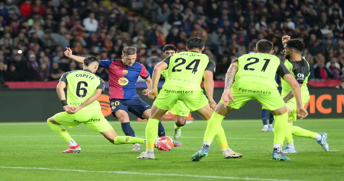 El Barcelona salió ileso y limpio, alegre como unas pascuas, de un partido de máxima exigencia porque en juego estaba la Liga y Flick decidió jugar con los futbolistas más discretos de la familia, señal de que confía en la plantilla y no solo en un equipo titular, ahora mismo mermado por las bajas de Lewandowski y Balde. El agobio del calendario y los horarios diabólicos obligan a rotar y regular las fuerzas a falta de cinco jornadas para acabar el campeonato y en vigilias de la final de Copa. Un excelente gol de Olmo acabó con la resistencia del Mallorca y deja a los barcelonistas con siete puntos más que el Madrid a la espera de su partido en Getafe. Nadie discutió la mínima victoria del Barcelona. El resultado fue mezquino con el buen fútbol de los reservas de Flick.