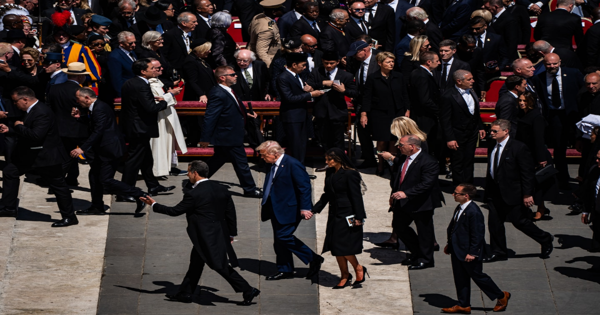 The pope’s funeral brought hundreds of dignitaries and foreign leaders to Vatican City, along with record crowds estimated at around 250,000 people. Among them were Trump and first lady Melania Trump, who arrived in Rome late Friday night for a blink-and-you’ll-miss-it visit, Trump’s first international trip of his second term.