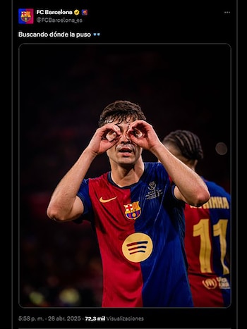 Tampoco faltaron los elogios para Pedri, el mediocampista de 22 años que abrió el marcador con un golazo desde afuera del área para adelantar al Barcelona. Los fanáticos opinaron tras el primer tiempo que el joven fue sustancialmente mejor que Jude Bellingham, estrella del Real Madrid. “Buscando a donde la puso”, escribió la cuenta del club catalán con el festejo del goleador, simulando tener unos binoculares.