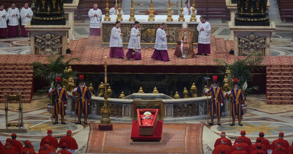 Later Wednesday, at St. Peter’s Basilica, the camerlengo presided over the service, known at the Liturgy of the Word, that allowed attendees to pay their respects to the late pope.
