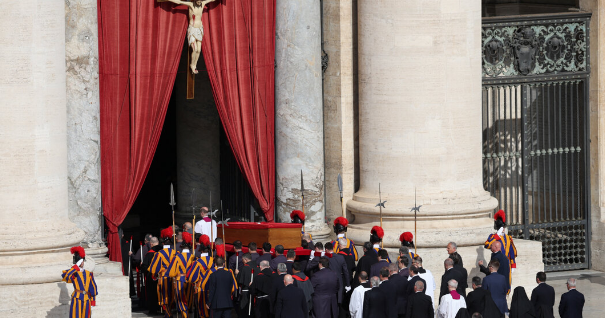 Francis’ body will lie in state at St. Peter’s Basilica before the pope’s funeral on Saturday.Credit…Antonio Masiello/Getty Images