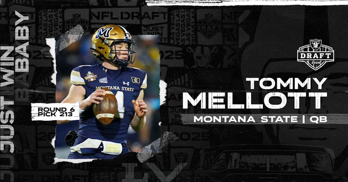 With their second of three picks in the sixth round, the Las Vegas Raiders selected receiver Tommy Mellott from Montana State.