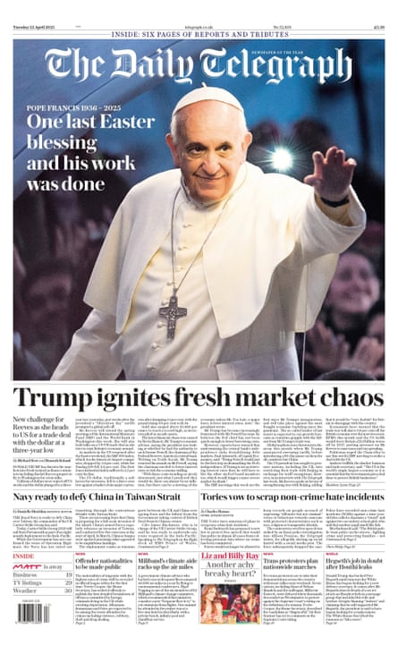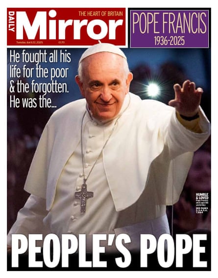 “People’s pope”, writes the Mirror, of a pontiff who shied away from pomp and ceremony and instead became known for his humility and compassion for the most vulnerable, including the poor and marginalised.